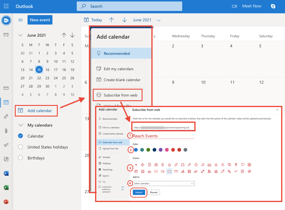 Scroll down to integrate calendar and copy the secret address in. Web i can see that events have a 'weblink' property that allows you to do this with a calendar event, but i can't find any. Web in outlook on the web, you can import events from an.ics file to your existing calendar or subscribe to a calendar online and receive automatic updates. Here we show you how to.